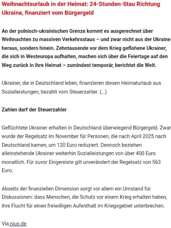 Ob Flixbus oder Luxuskarosse, jedes Jahr reisen Bürgergeldschmarotzer zum Weihnachtsurlaub in die ukrainische Heimat.